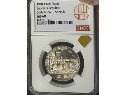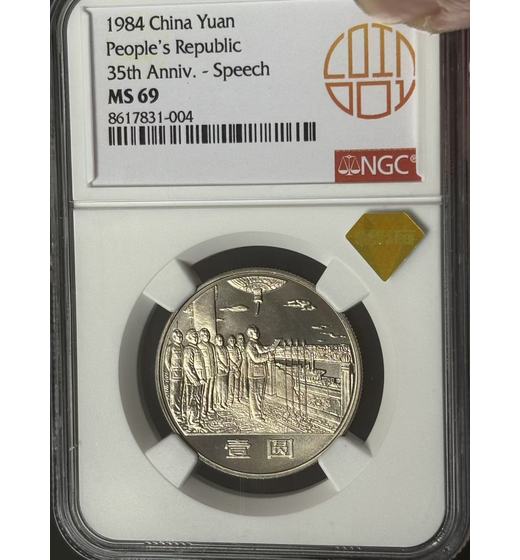 【美德澳专场拍卖】1984年建国三十五周年大典半精制币上海版 NGC MS69(网站原状态+碧海金钻)