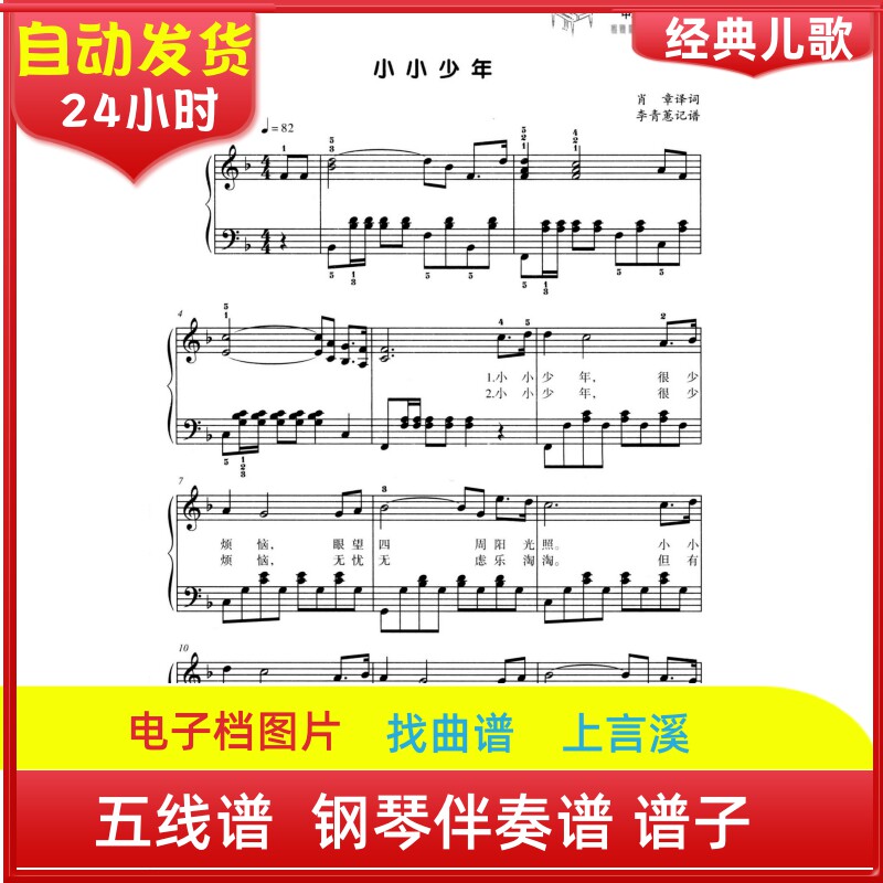 小小少年经典儿歌五线钢琴伴奏曲谱子声乐考级