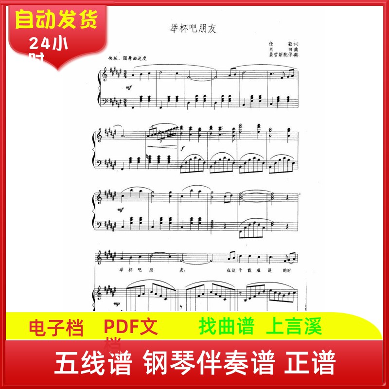 举杯吧朋友#F高考艺考高考五线钢琴伴奏曲谱子声乐考级