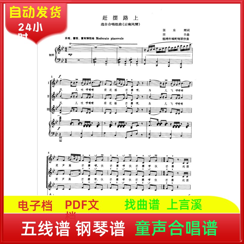 赶摆路上张东辉词田丰曲杨鸿年编配钢琴伴奏童声部合唱艺考高考五线钢琴曲谱子声乐考级