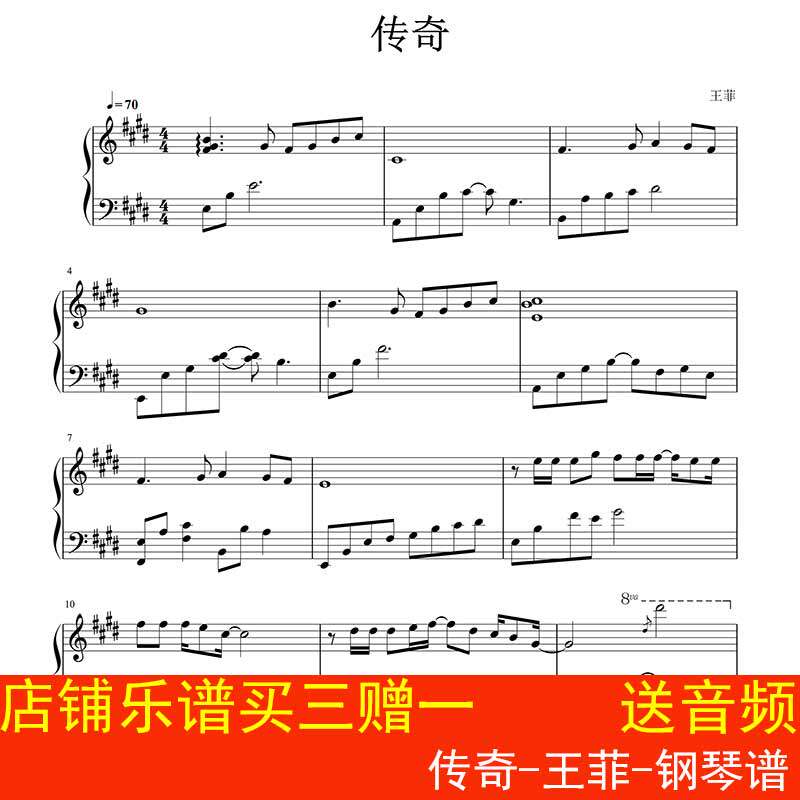 传奇-王菲-钢琴谱 五线谱 乐谱 高清3页