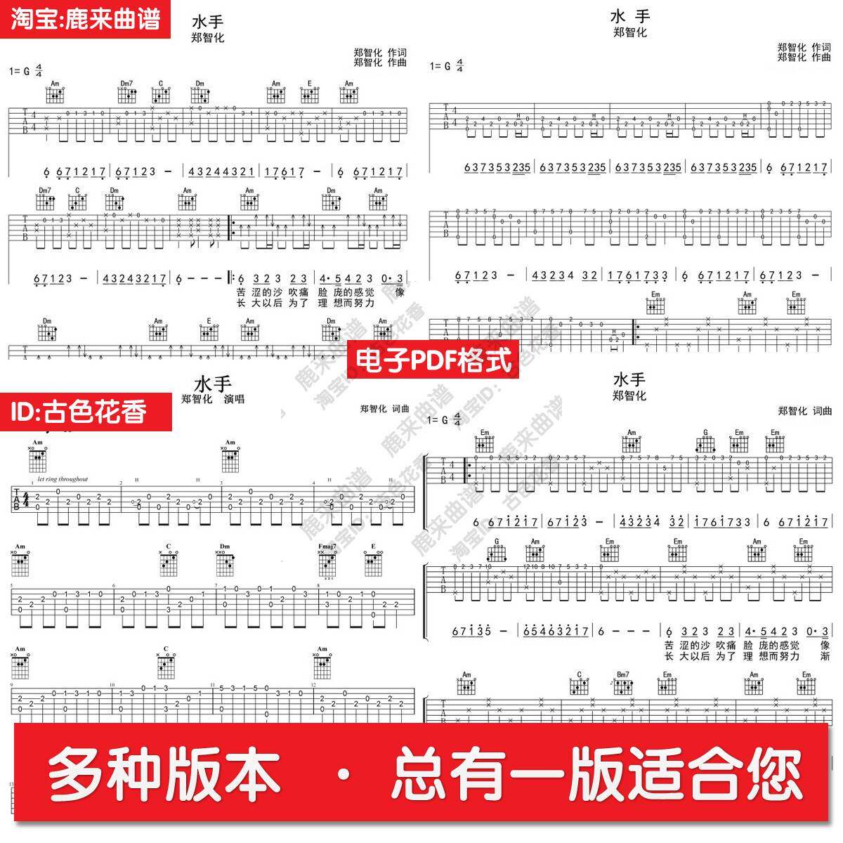 水手 郑智化 共四个版本全发 吉他谱 指弹谱 六线谱 PDF格式