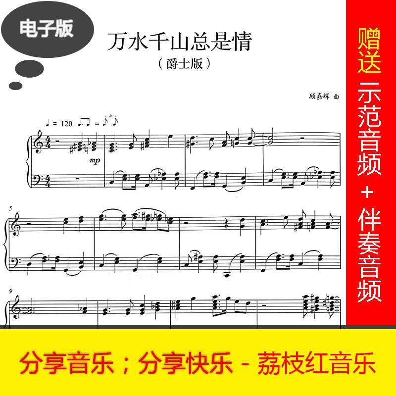 万水千山总是情(爵士版)钢琴谱+钢琴伴奏音频+示范 b003