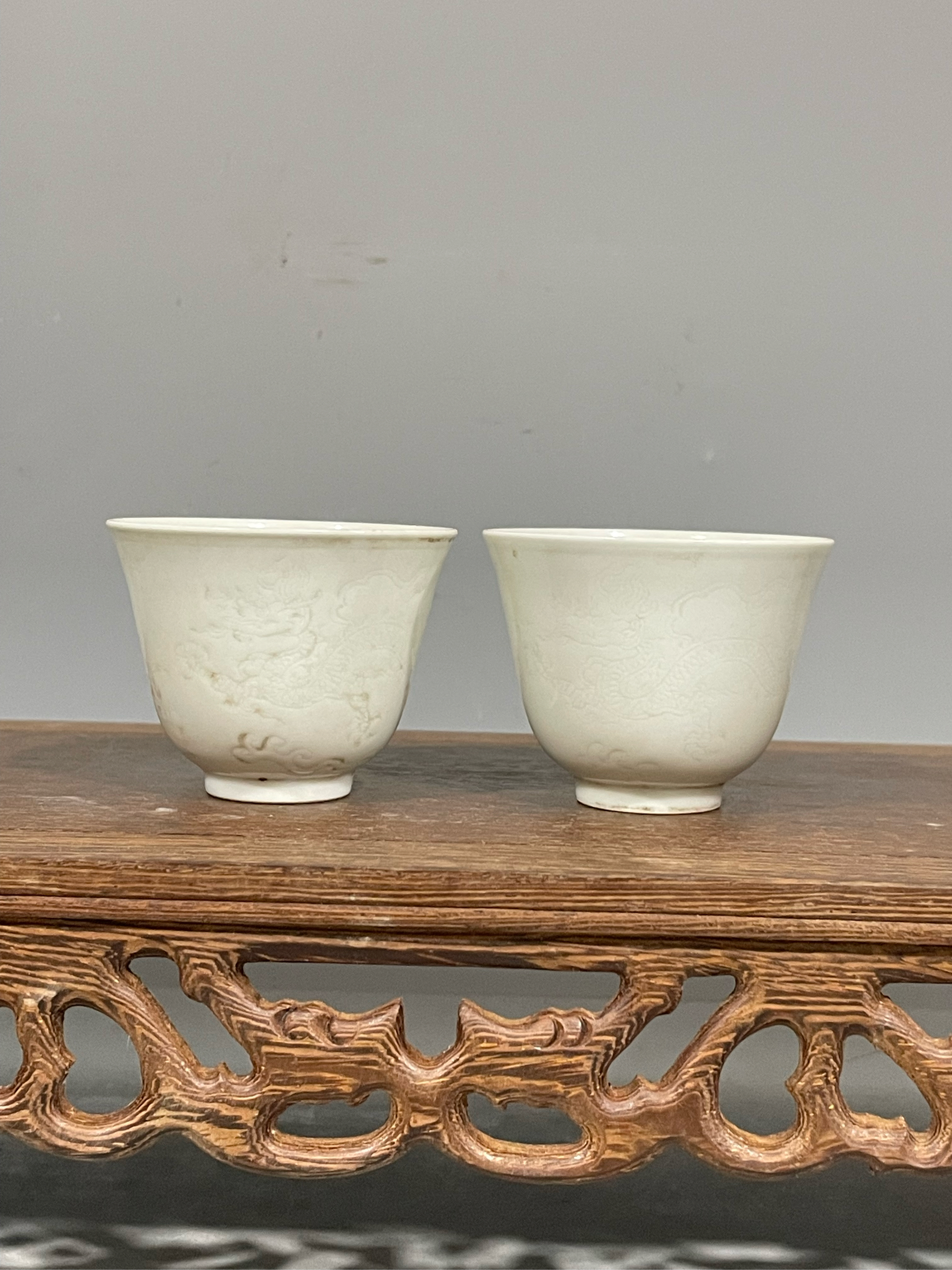 明代|「白釉马蹄形暗印花纹杯」,德化窑