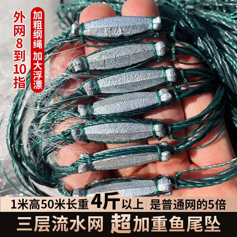 加重渔网粘网三层沉网河湖急流水进口鱼网丝网加粗3米高4指100米