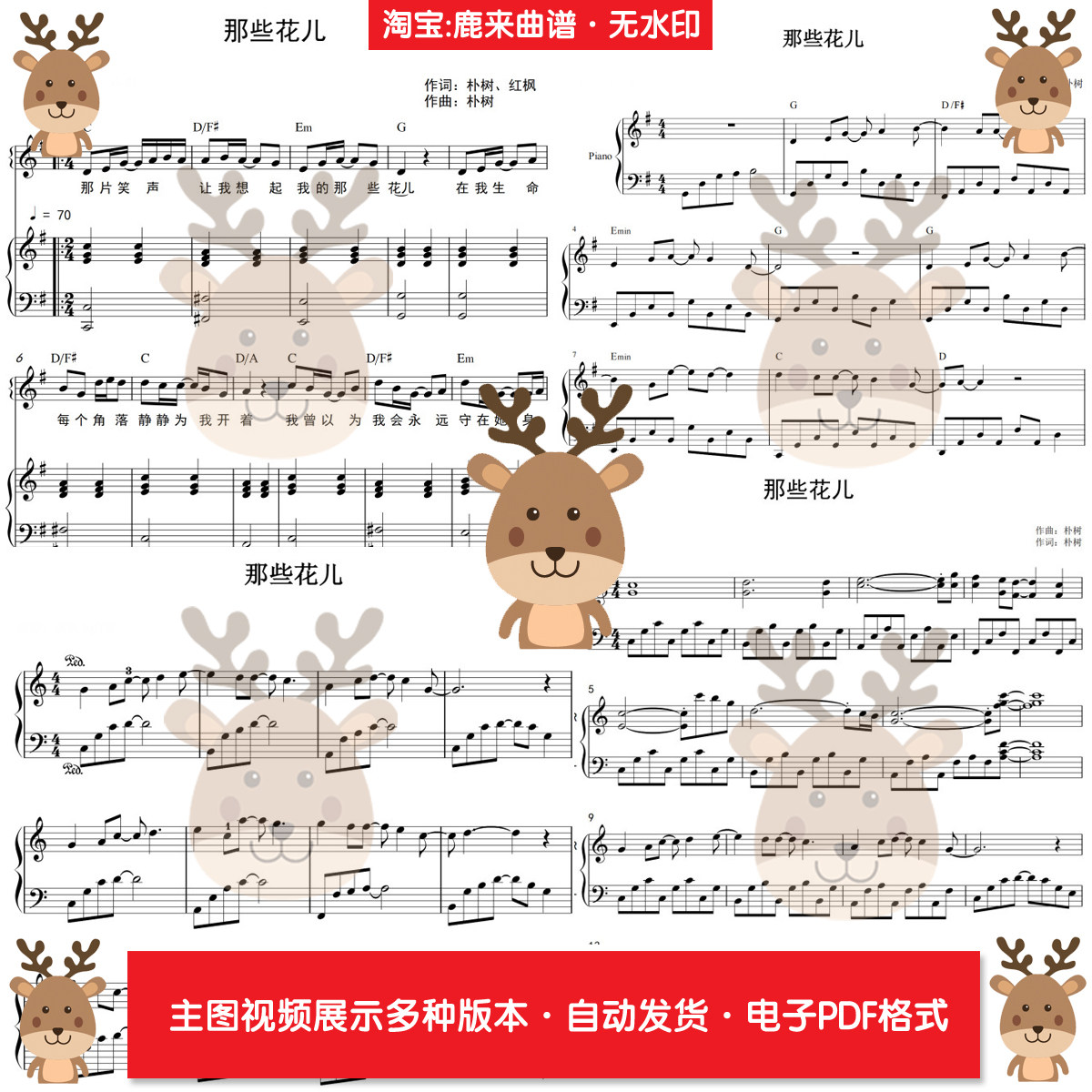 那些花儿-朴树 共12个版本 钢琴谱 弹唱谱 钢琴简谱 电子格式