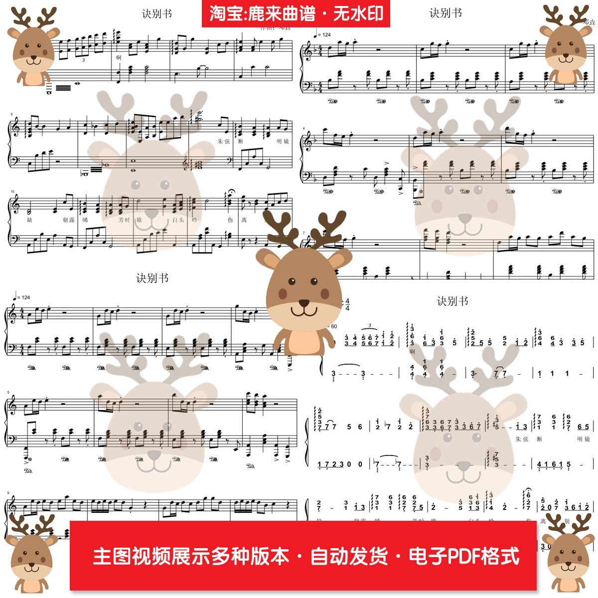 诀别书-邓垚 共9个版本 钢琴谱 电子格式