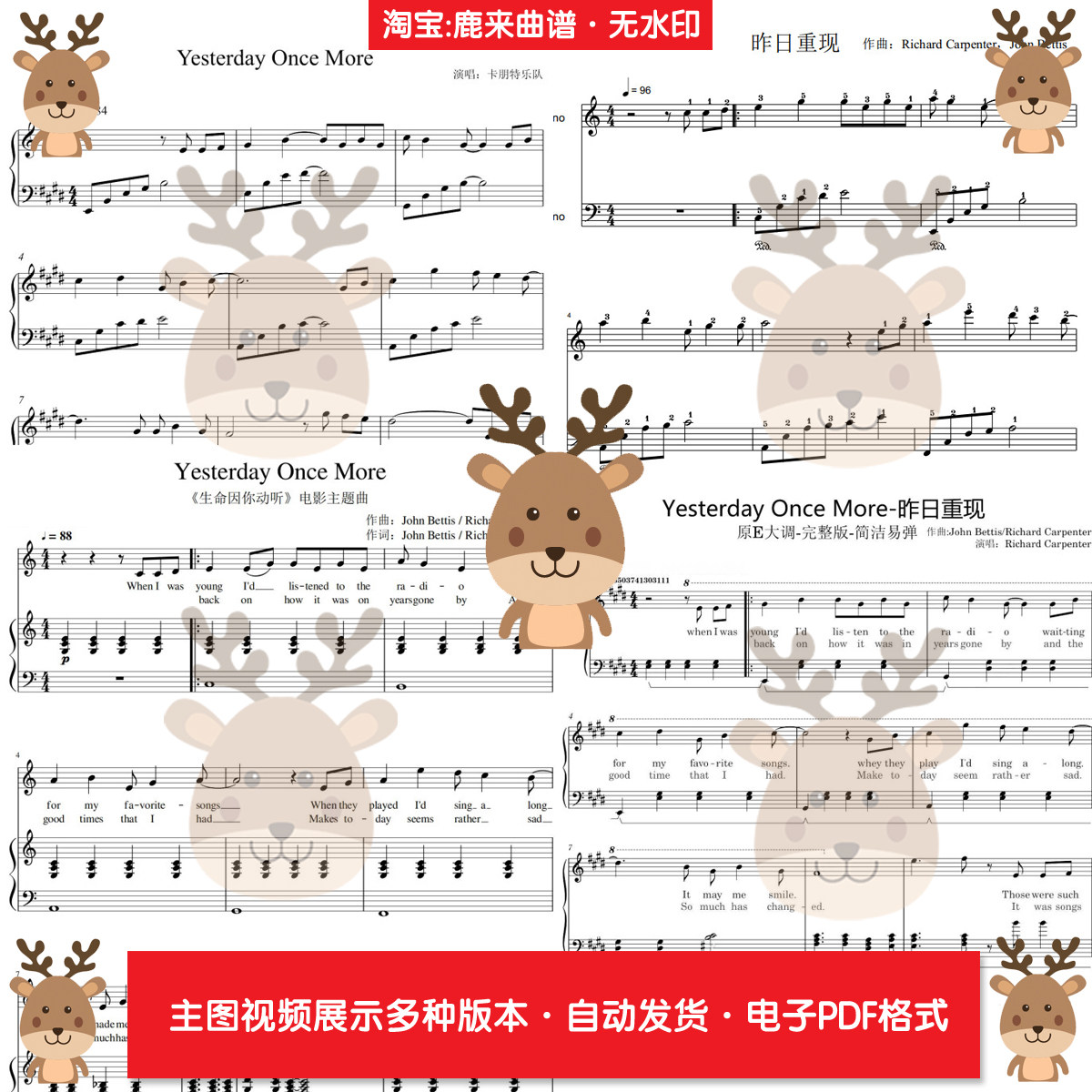 昨日重现 Yesterday Once More 共20个版本 钢琴谱 电子格式