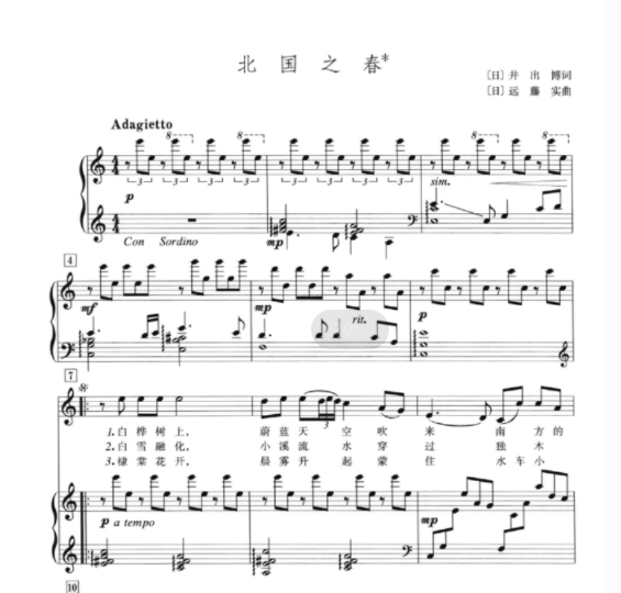 北国之春〔日〕远藤实曲 C调 声乐正谱 钢琴伴奏谱 五线谱 乐谱
