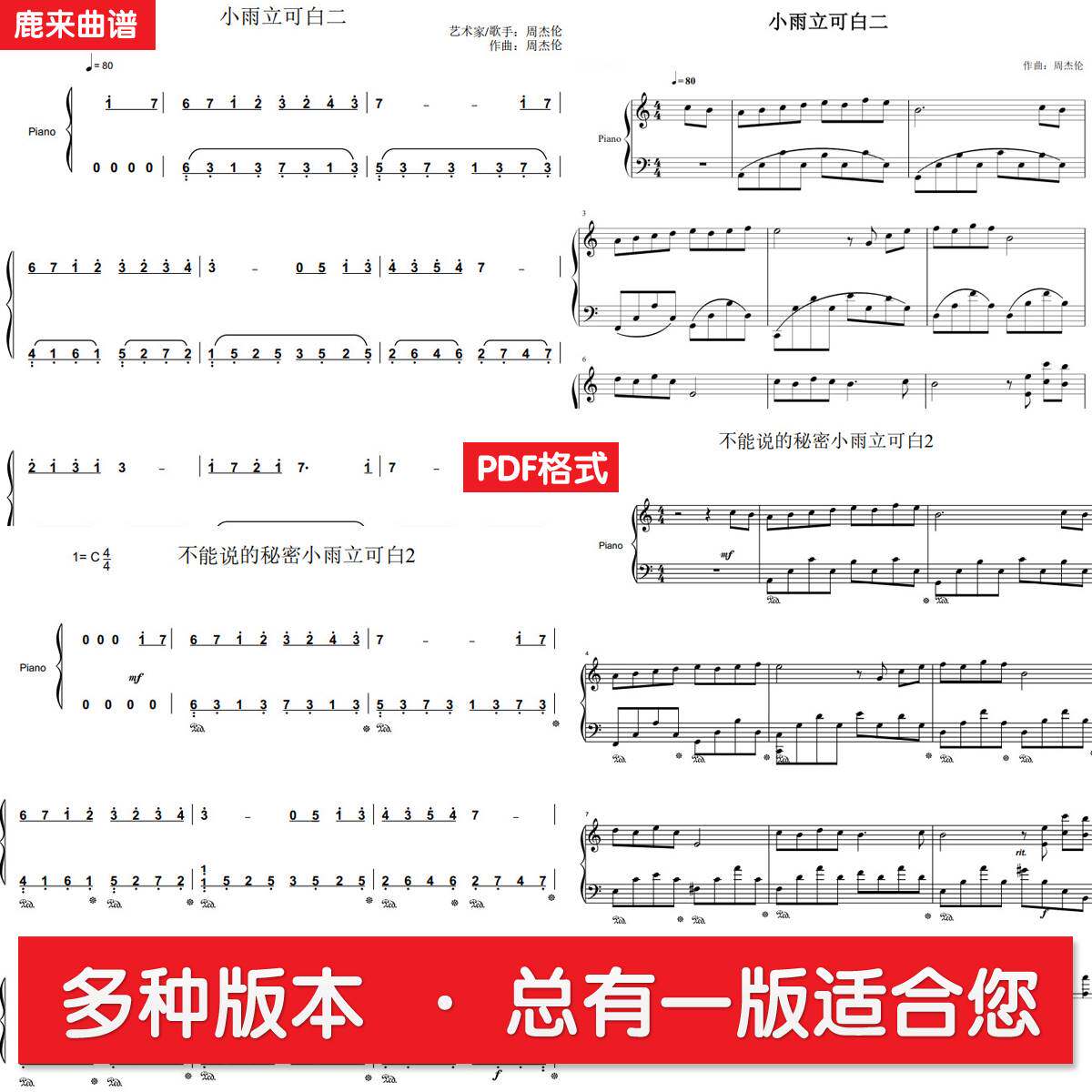 不能说的秘密 小雨写立可白Ⅱ 共七个版本全发 钢琴谱 简谱五线谱