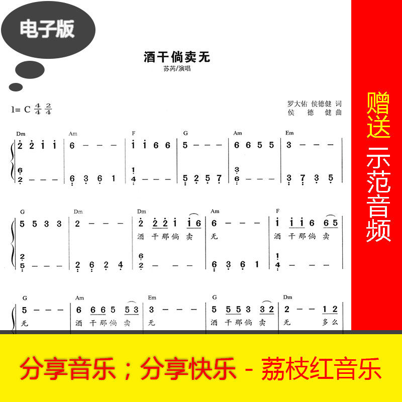 酒干倘卖无 带歌词数字简谱钢琴谱+示范 i0066