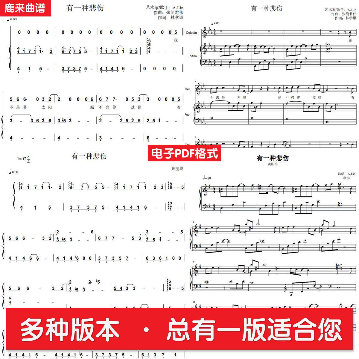 有一种悲伤 Alin 共七个版本全发 钢琴谱 弹唱谱 钢琴简谱五线谱