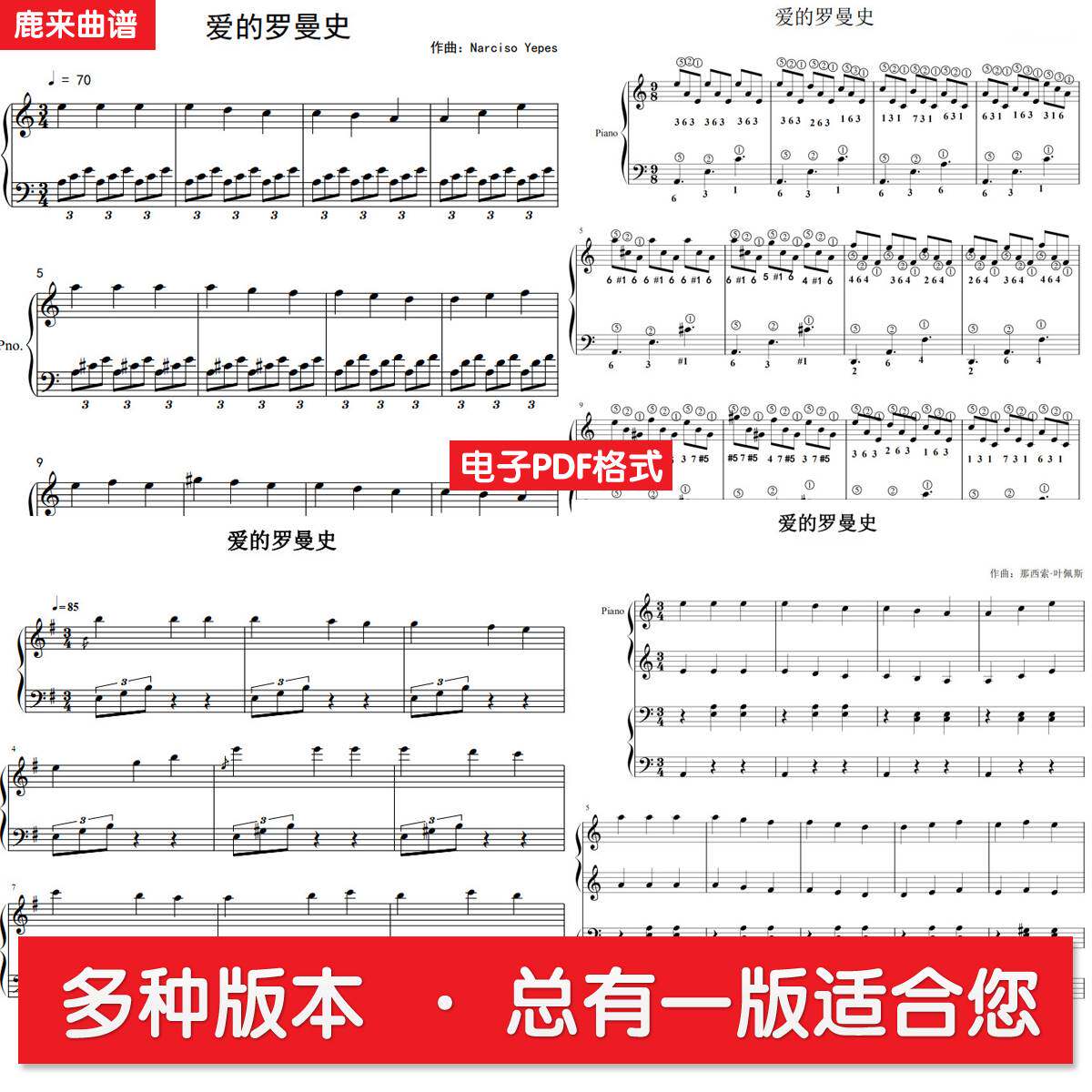 爱的罗曼史 共11个版本全发 钢琴谱 钢琴简谱五线谱 电子PDF格式