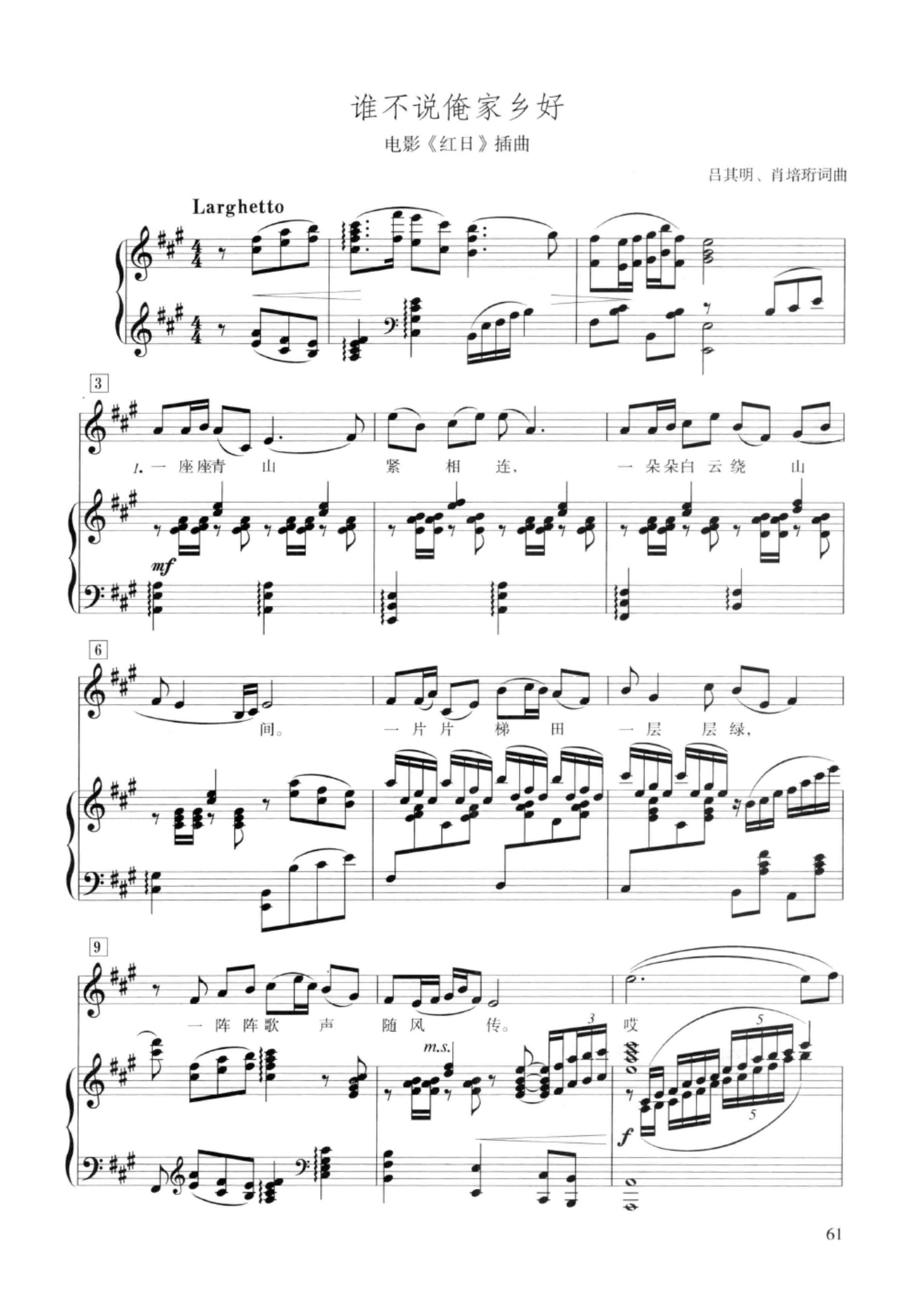 谁不说俺家乡好 A调 声乐正谱 钢琴伴奏谱 五线谱 乐谱