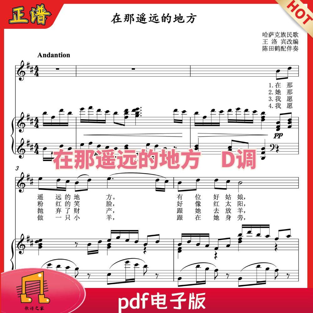 在那遥 远的地方D调正谱哈萨克族民歌王洛宾 陈田鹤版声乐钢琴谱