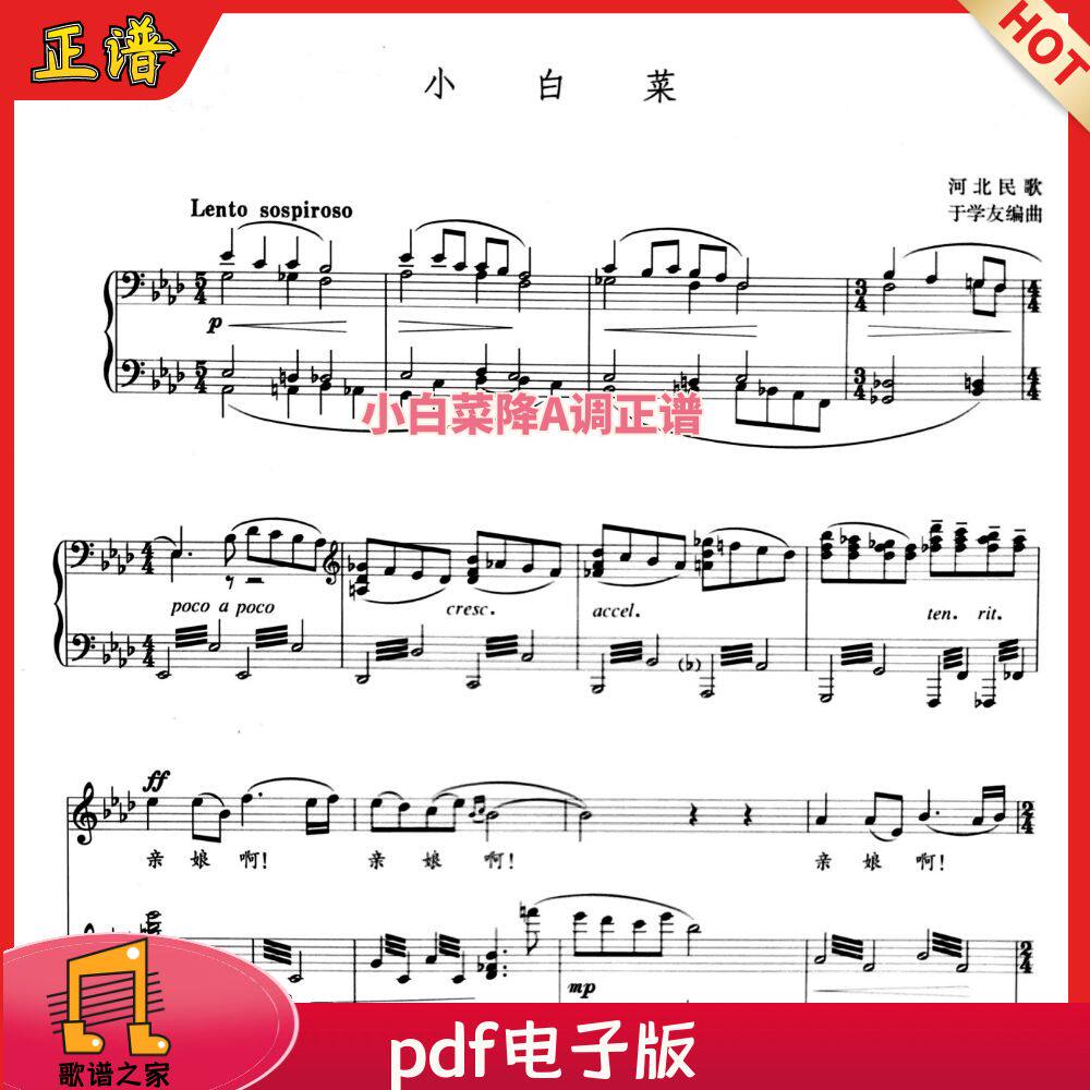 小白菜降A调正谱 河北民歌 于学友曲 声乐谱五线谱钢琴谱 中国艺术歌曲