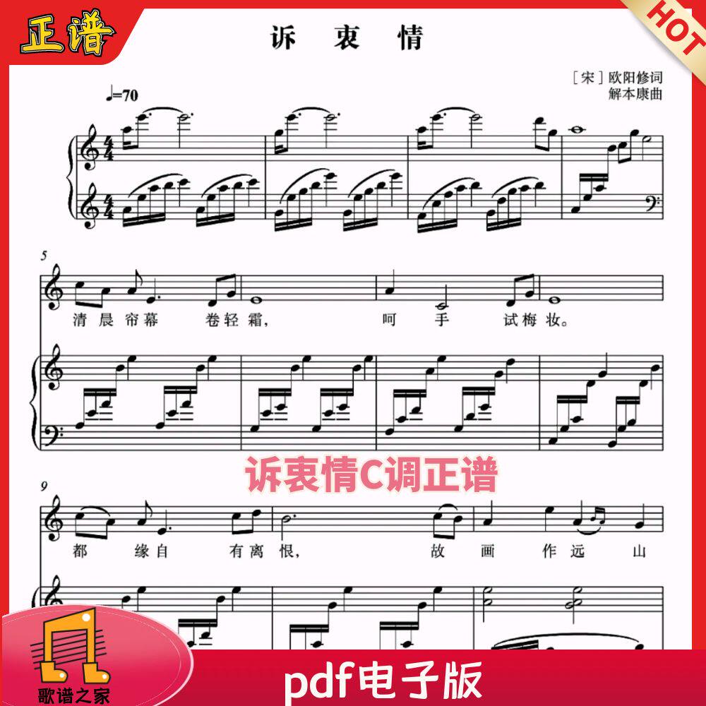 诉衷情C调正谱 声乐谱钢琴谱五线谱
