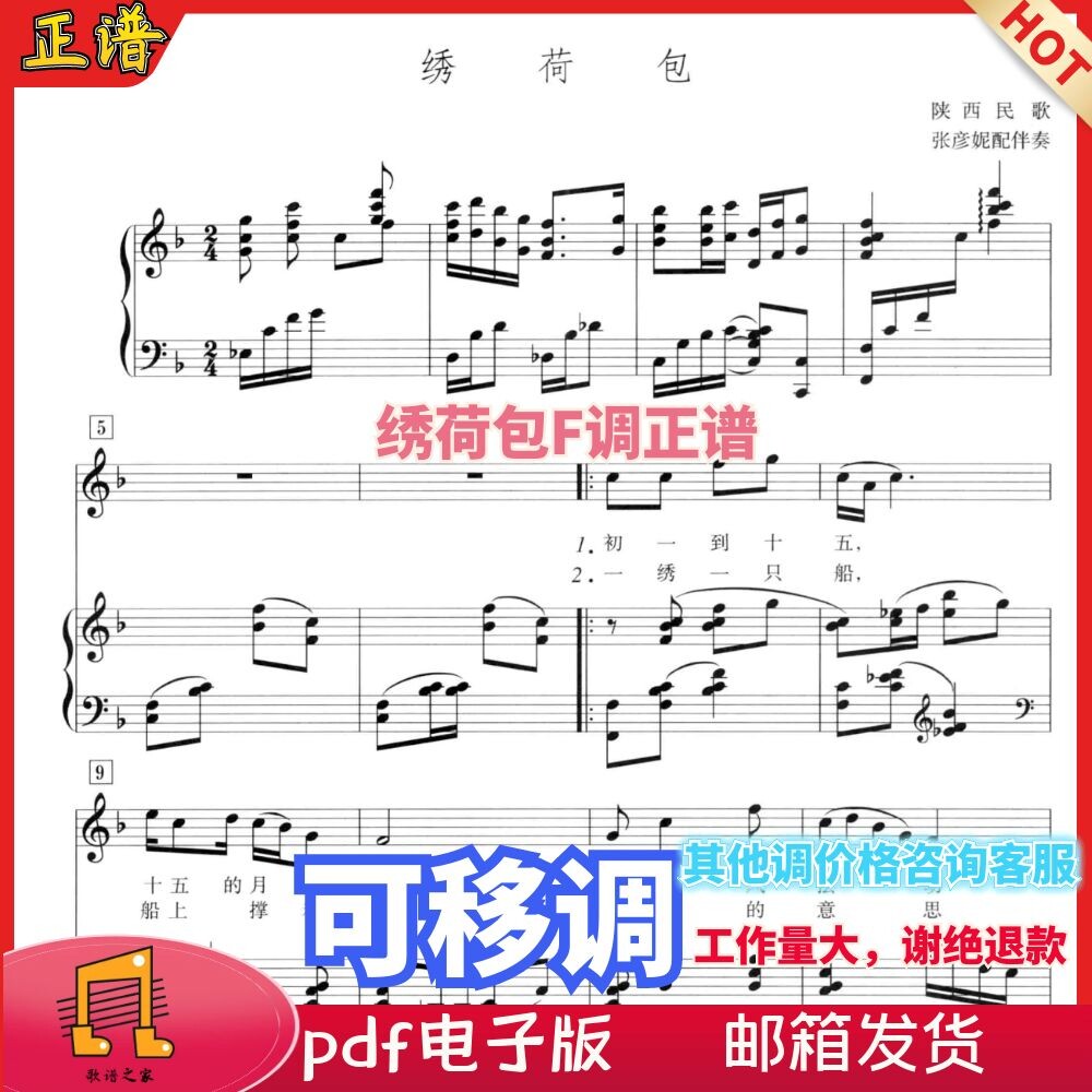 绣荷包 F调正谱陕西民歌声乐钢琴五线谱