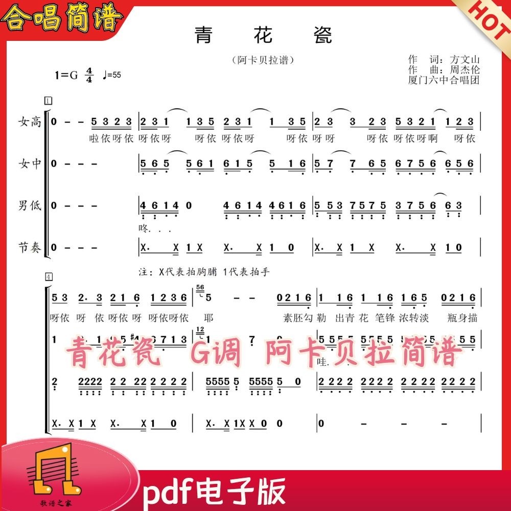 青花瓷G调合唱谱简谱 四五声部阿卡贝拉简谱 厦门六中 声乐谱