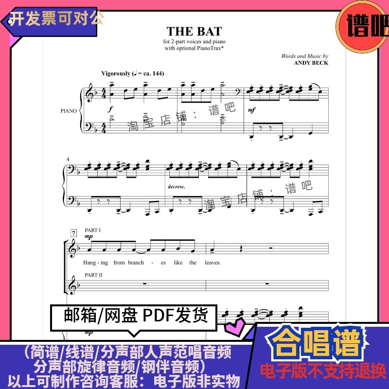 The Bat 蝙蝠 合唱谱二声部童声女声同声 简谱五线谱钢琴正谱音频