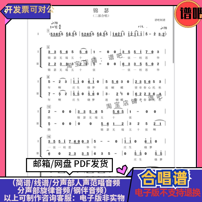锦瑟 新编合唱谱二/三/四声部混女声简谱五线钢琴伴奏音频正谱
