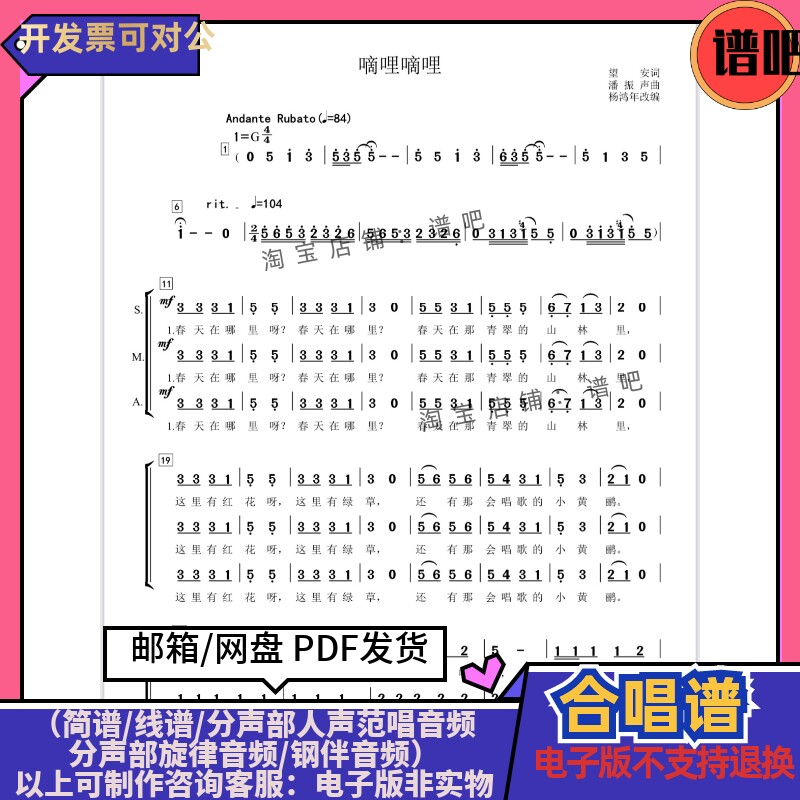 嘀哩嘀哩 新编合唱谱新版杨鸿年三声部简谱/五线谱伴奏谱/音频伴奏/分声部音频童声变奏