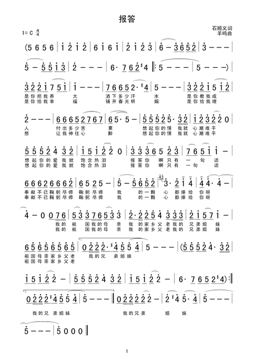 《报答(高清版)》石顺义作词 羊鸣作曲 ,原创歌曲简谱,通俗歌曲,国语