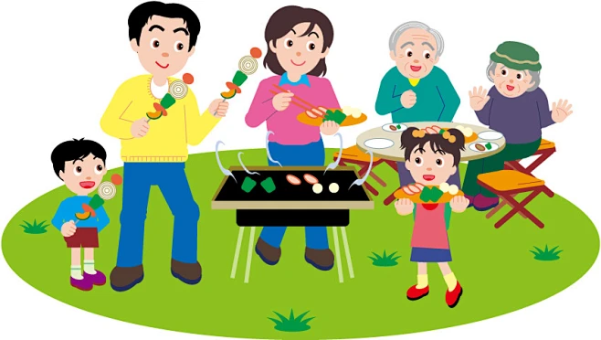 烧烤 素材 卡通一家人烧烤