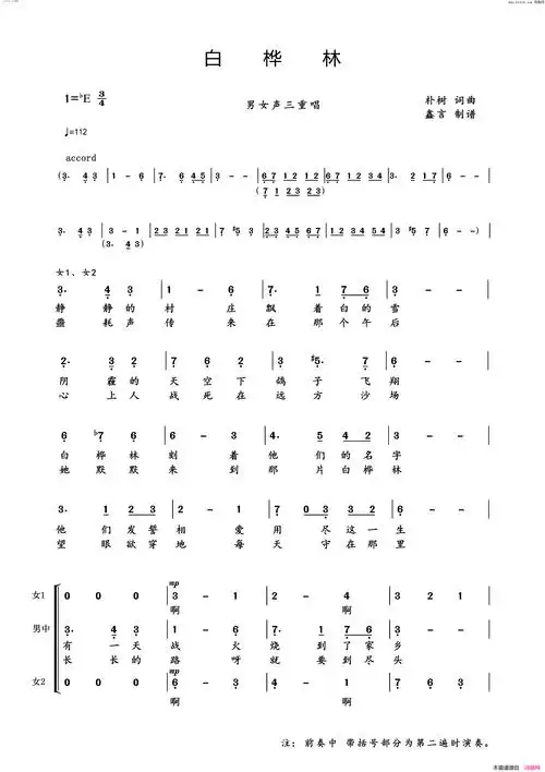 白桦合唱谱