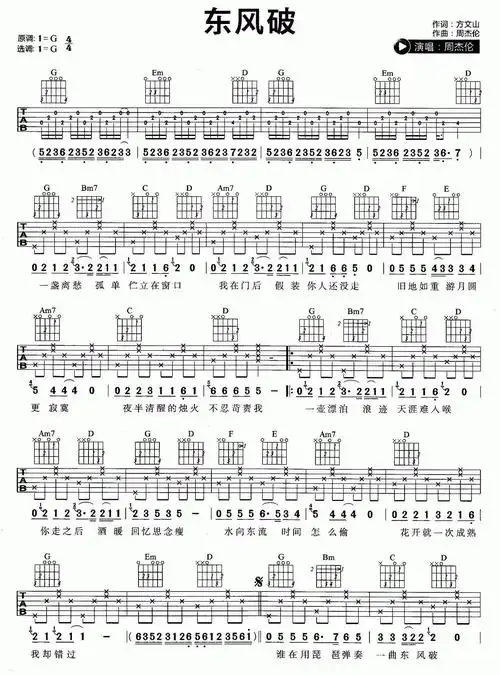 东风破吉他谱 g调 周杰伦曲谱图片第1张
