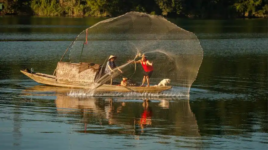 撒网捕鱼是一门传统技术需要掌握一定的技巧才能有足够的收获