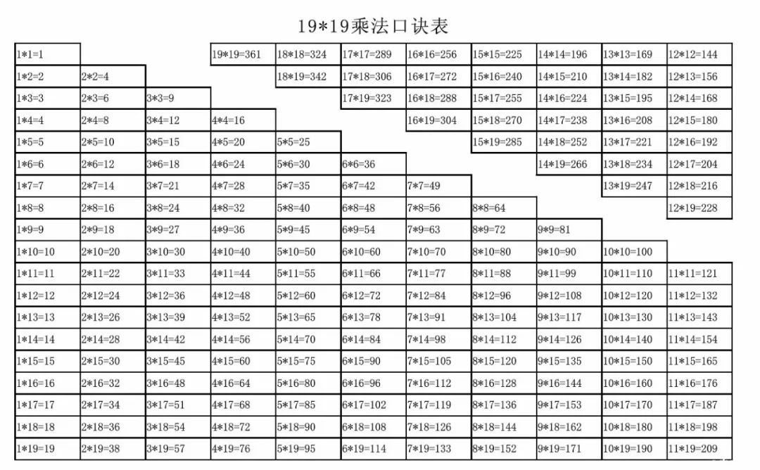 大九九1919乘法口诀表非常实用