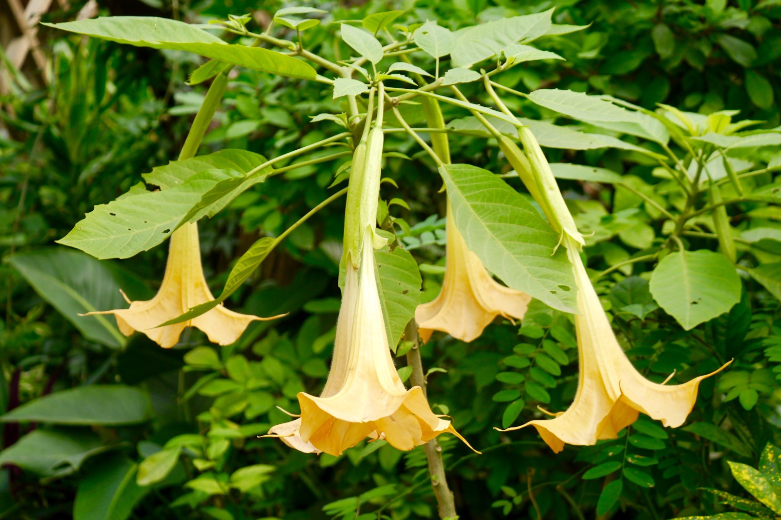 木本曼陀罗,花黄色,喇叭状下垂,长达20余厘米,是种观赏价值很高