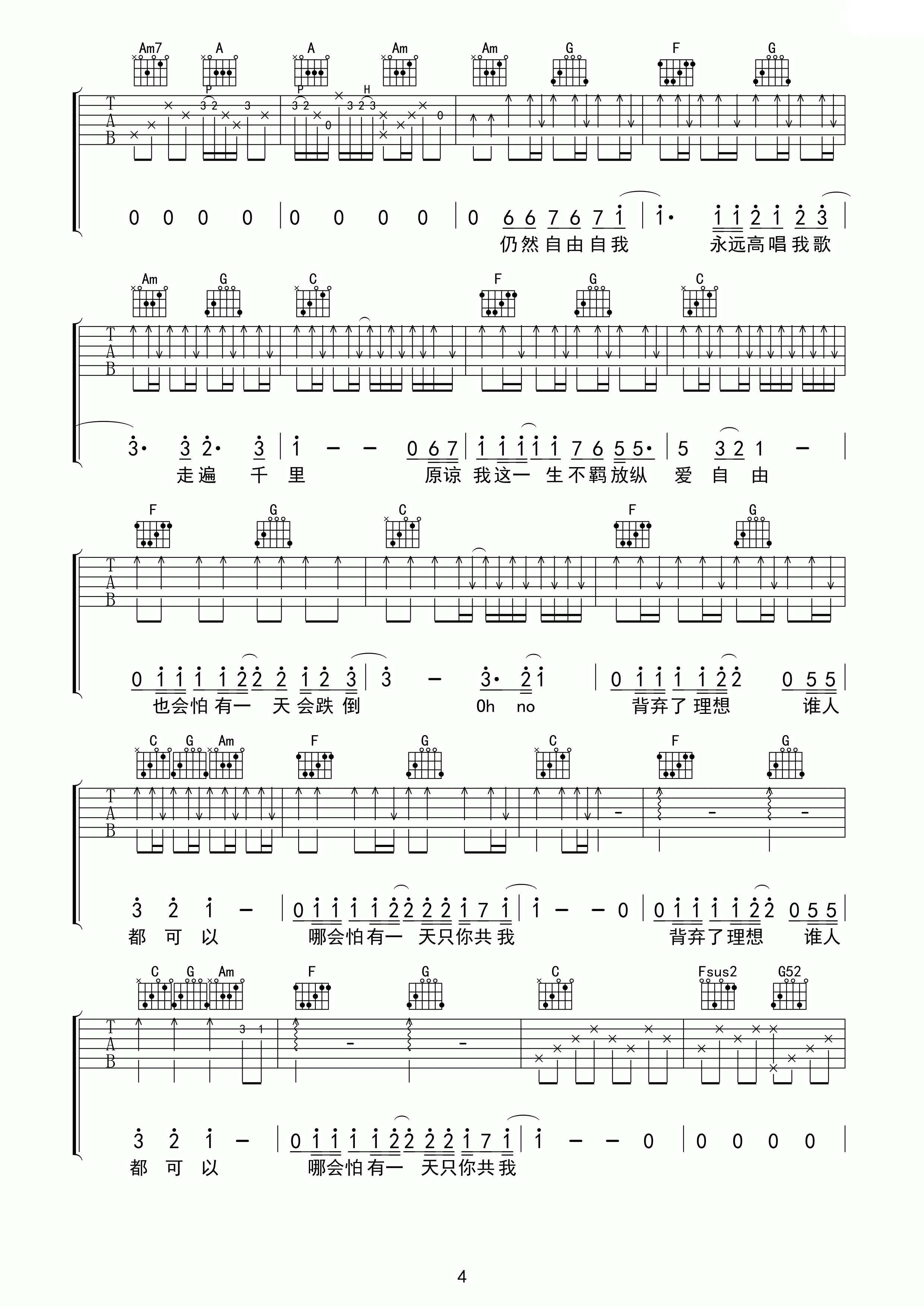 海阔天空吉他谱_c调简单版_beyond_高清六线谱1