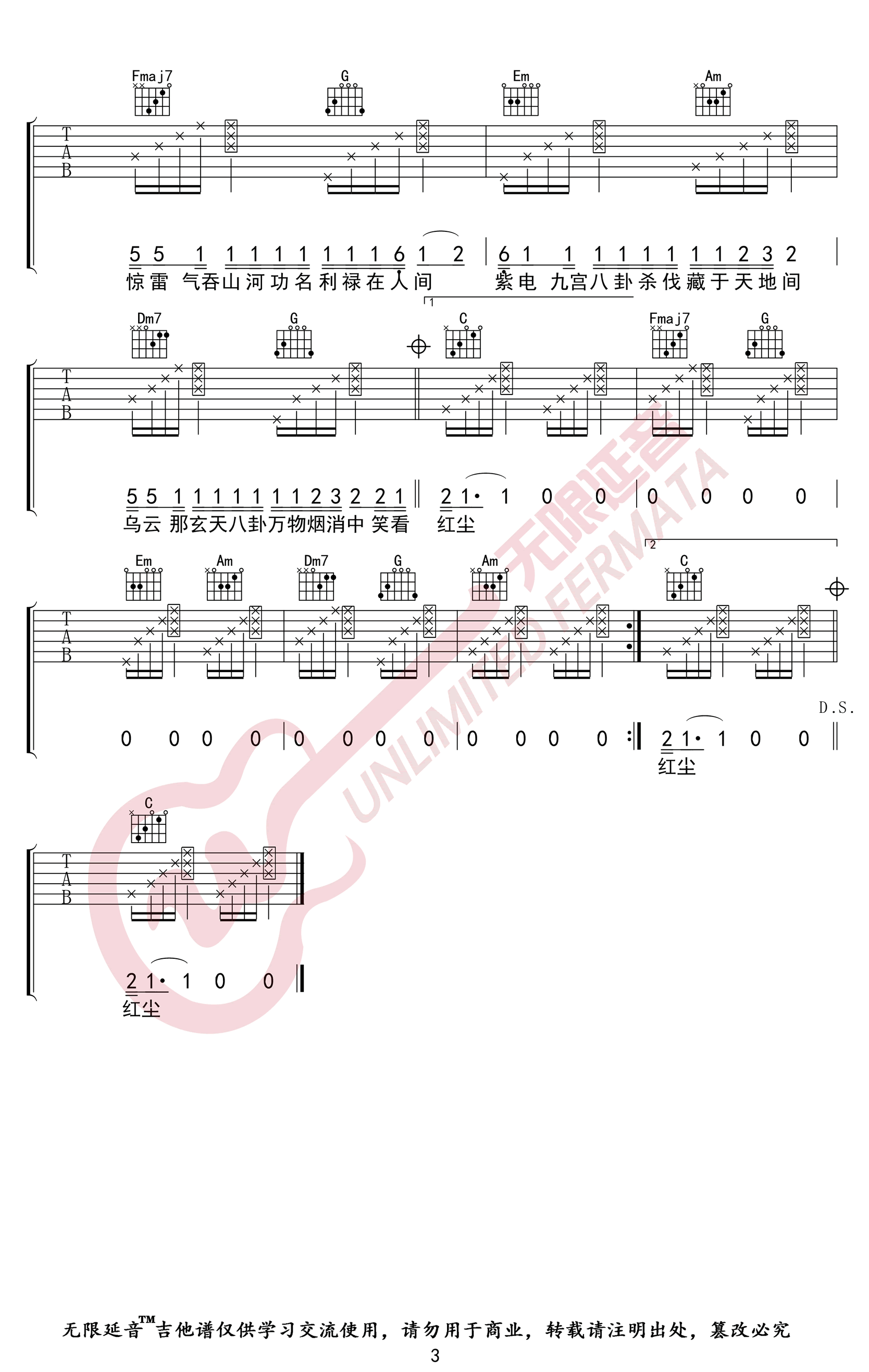 惊雷吉他谱 c调高清版_无限延音编配_皮卡丘多多