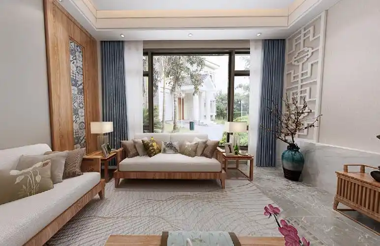 家装设计客厅装修效果图,现代新中式风格室内家装设计以简约内敛的