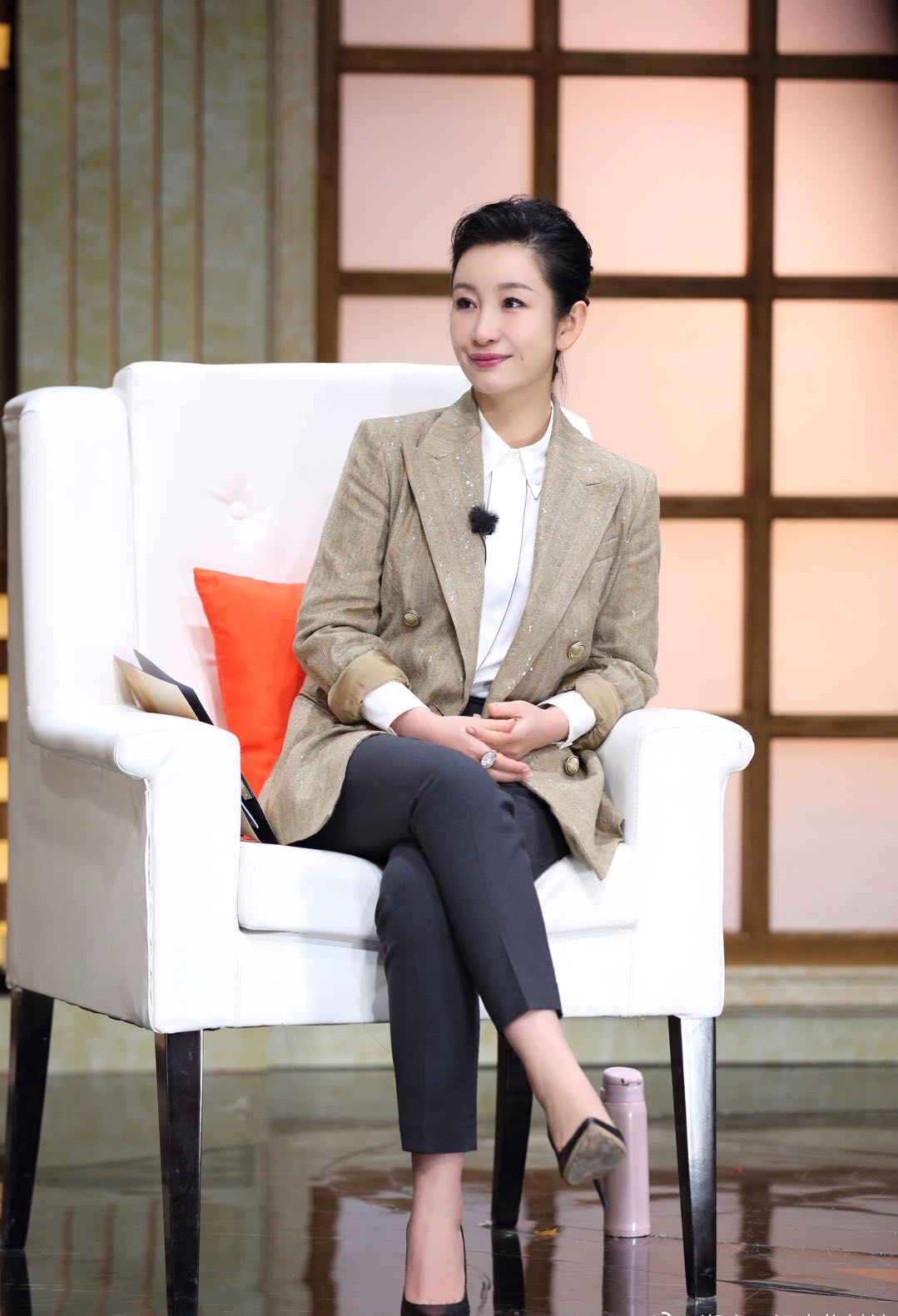秦海璐造型好"干练",黑色西服配金色半身裙,一般人穿不出质感