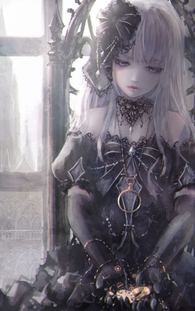 暗黑系动漫美少女插画,光影柔和构图灵动,酷帅与温柔并存