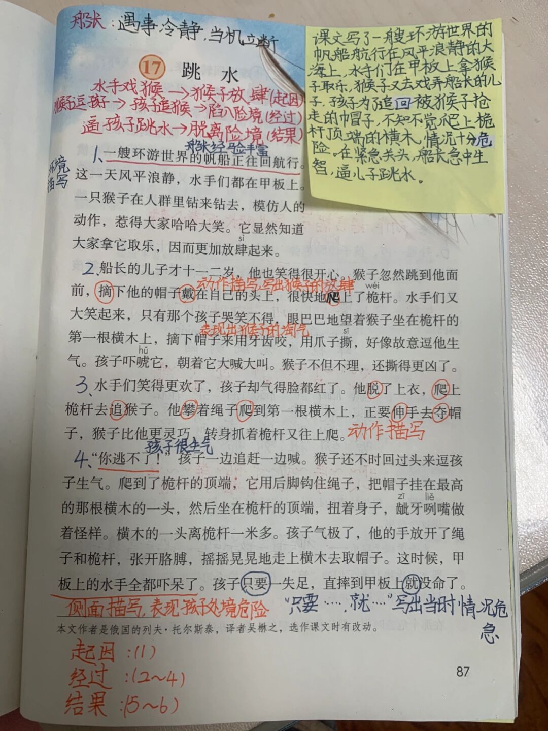 语文五下第17课笔记-跳水 寒假最后一更! 开学后会周更!