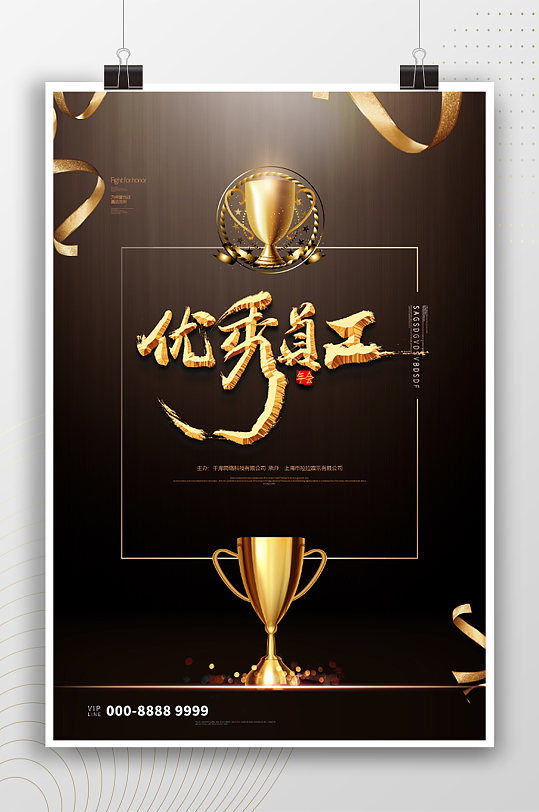 金色奖杯优秀员工海报