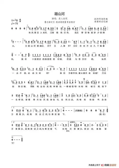 简谱是七叔呢踏山河附和弦歌词