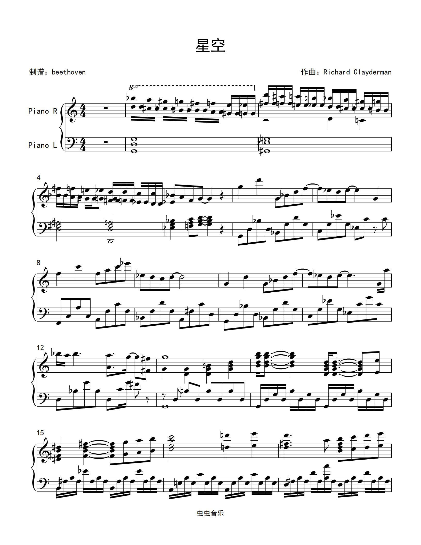 《星空》钢琴独奏 理查德·克莱德曼钢琴谱-c调-虫虫钢琴