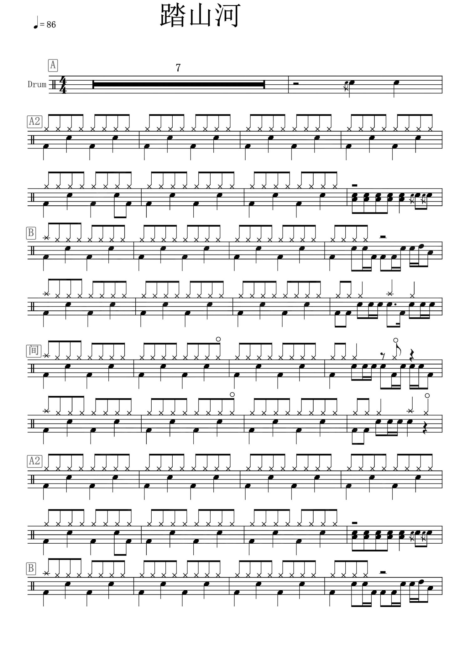 是七叔呢-踏山河(简化版)架子鼓谱 动态鼓谱