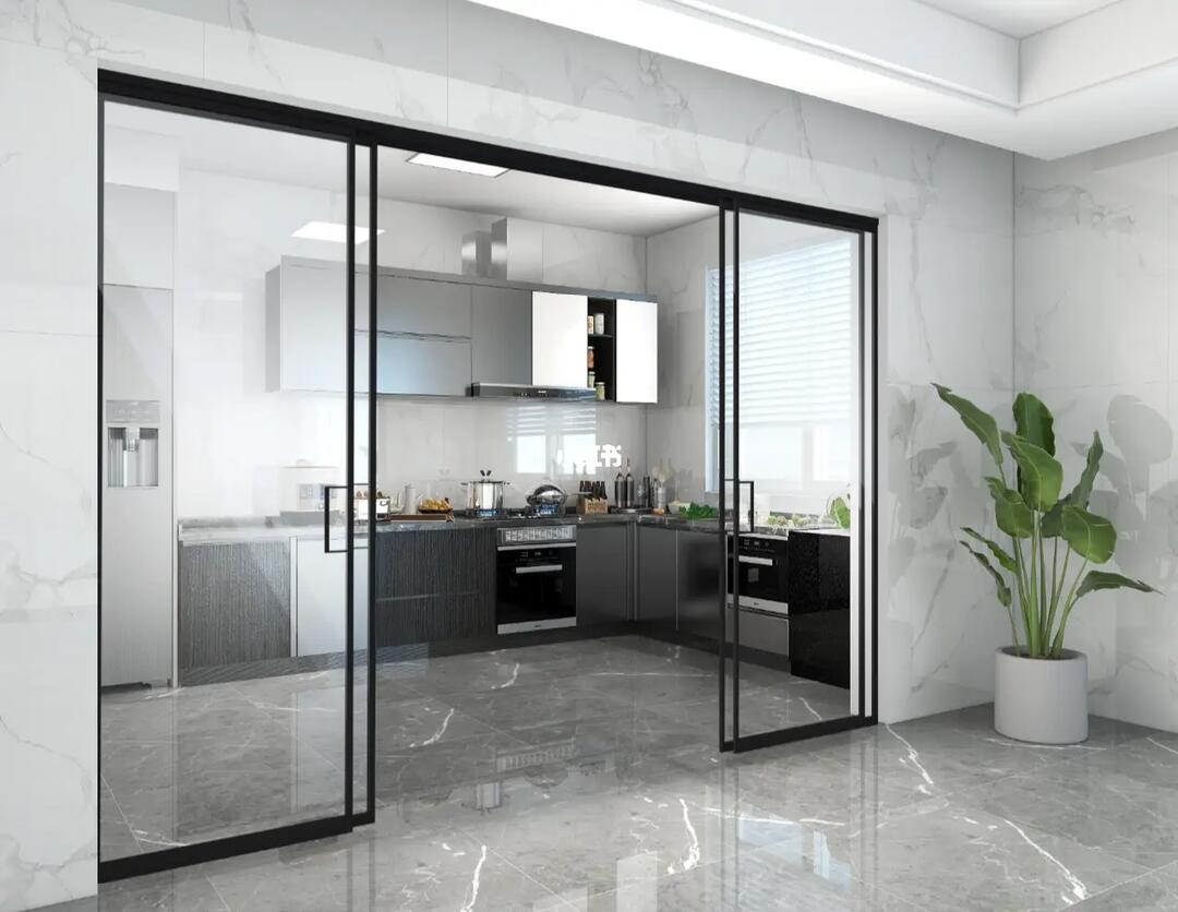 福州极简四联动吊轨推拉门厨房门极简门定制
