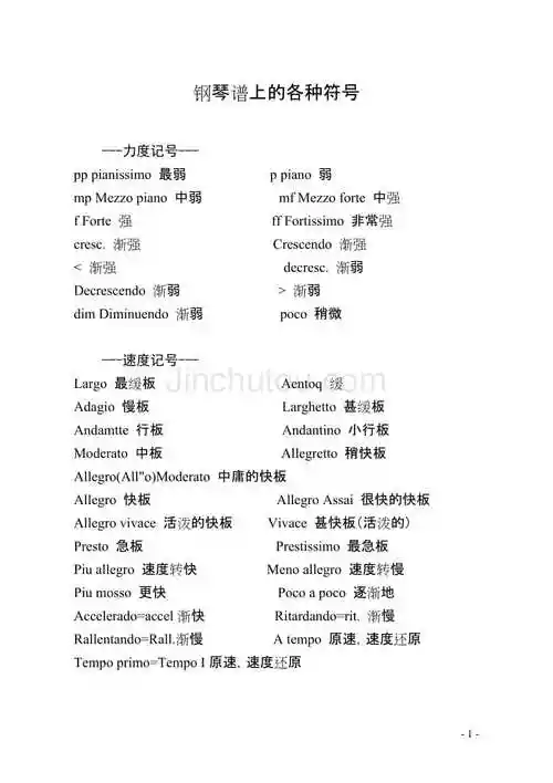钢琴谱上的各种符号
