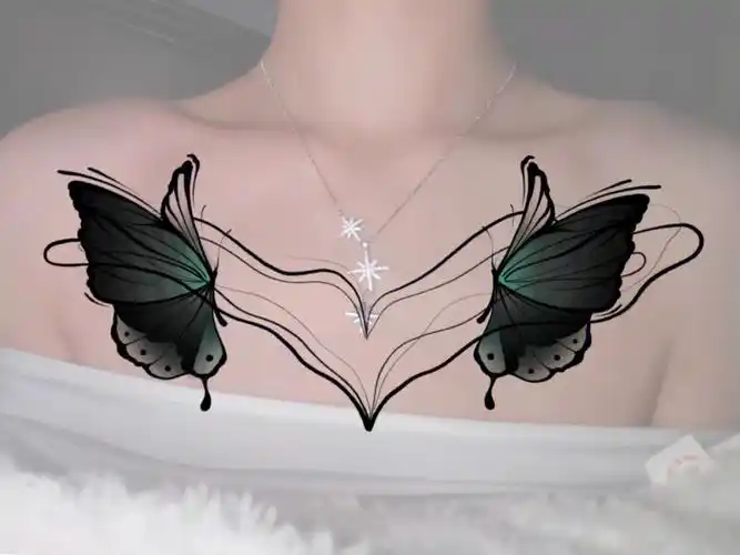 女孩胸前蝴蝶纹身图案图片