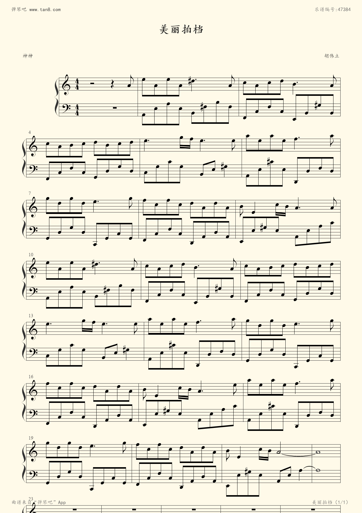 钢琴谱 - 美丽拍档