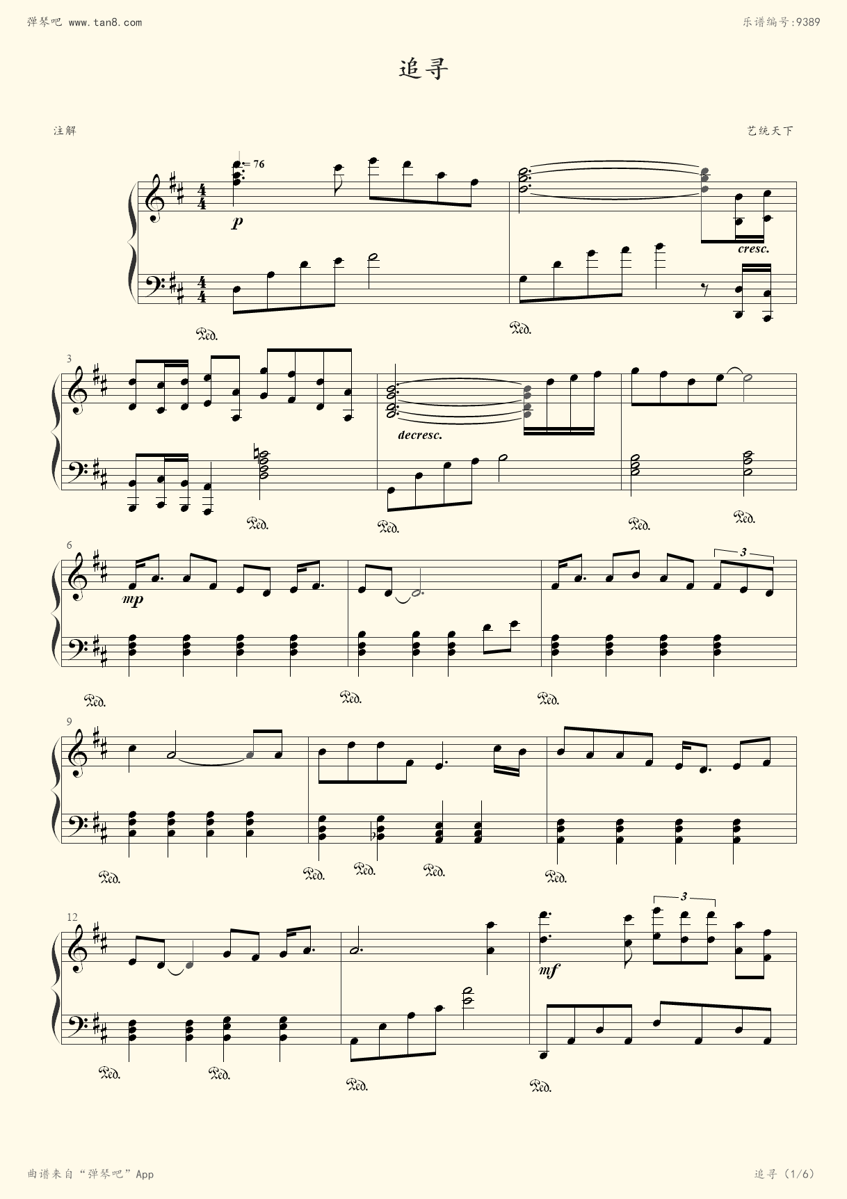 追寻_钢琴谱_搜谱网