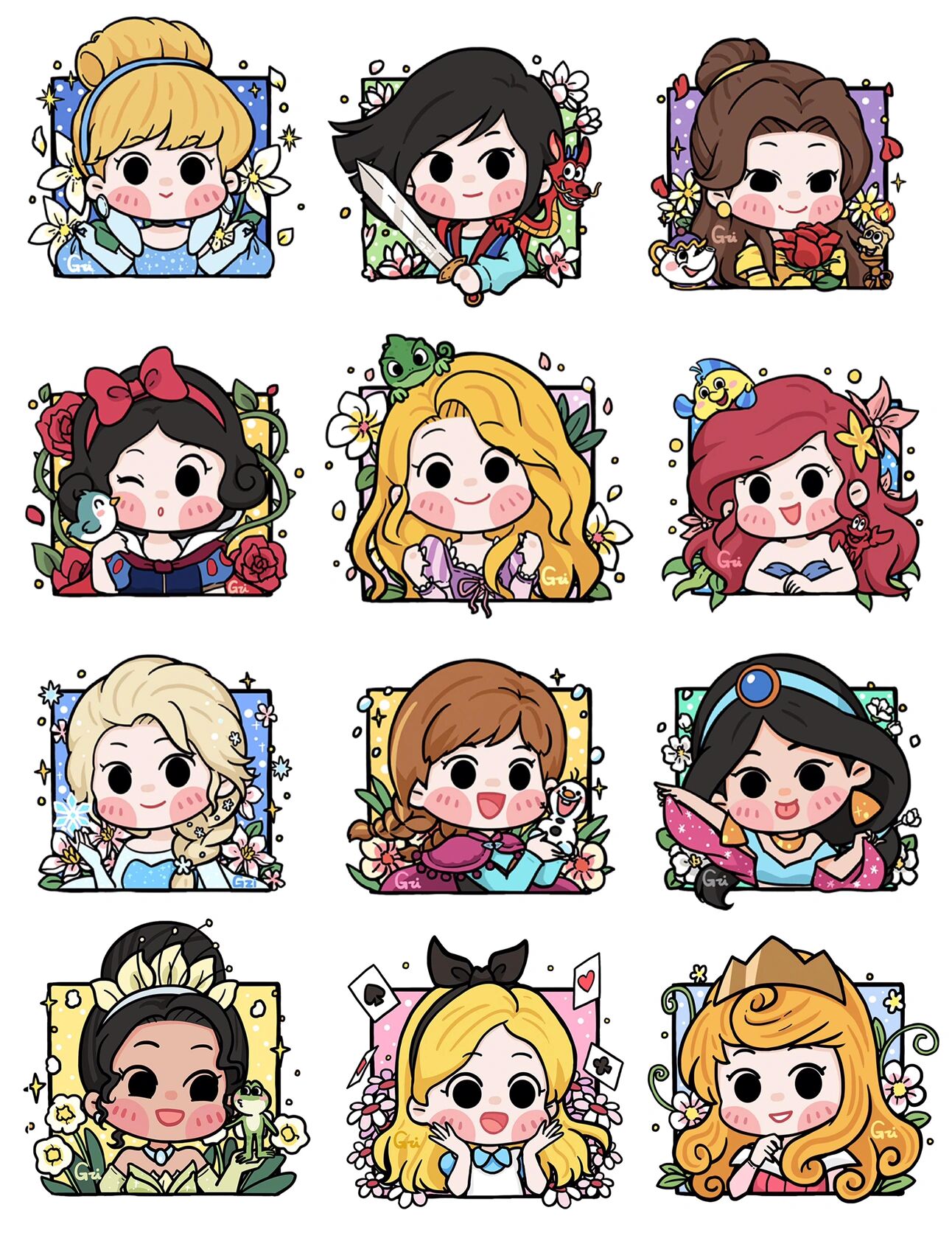 96萌小g爱涂鸦 《迪士尼公主》无水印 q版头像 凑够12个公主,后面