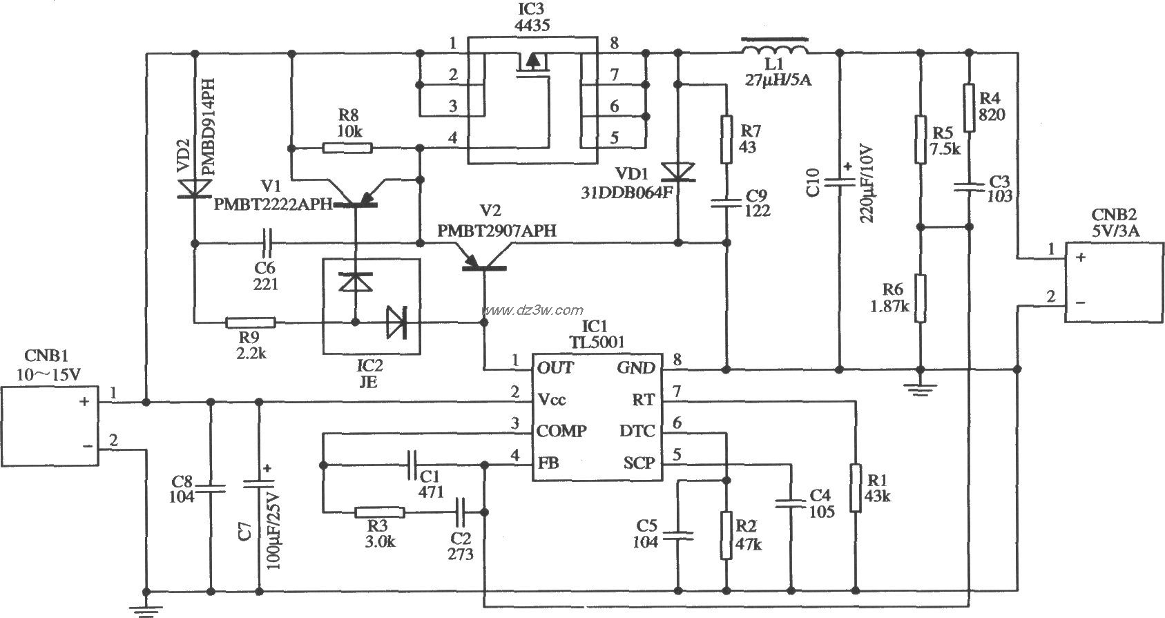 3w5v输出开关电源电路